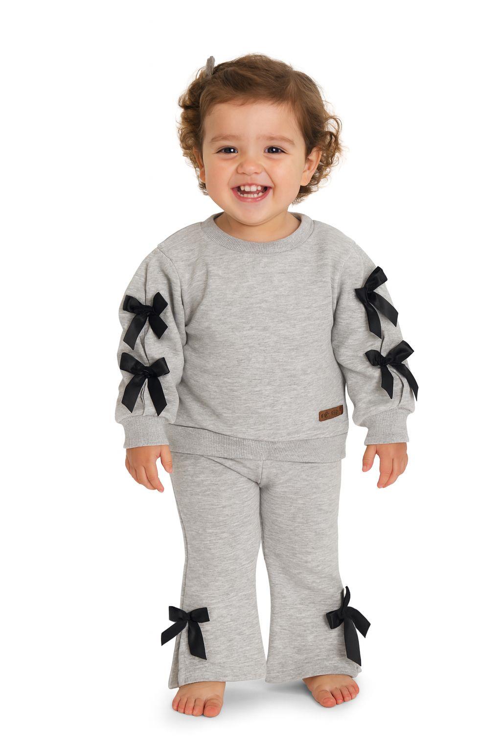 Adorable and elegant, the gray bow-tied two-piece set offers both comfort and style for your baby. Made from soft, skin-friendly fabric, it's an ideal choice for all seasons.