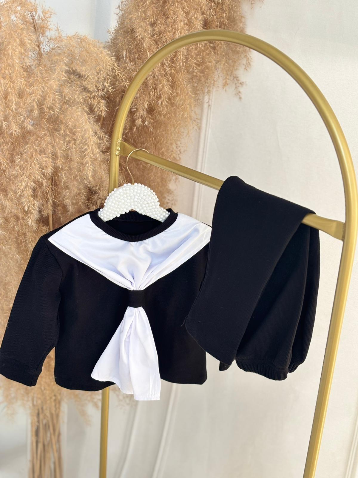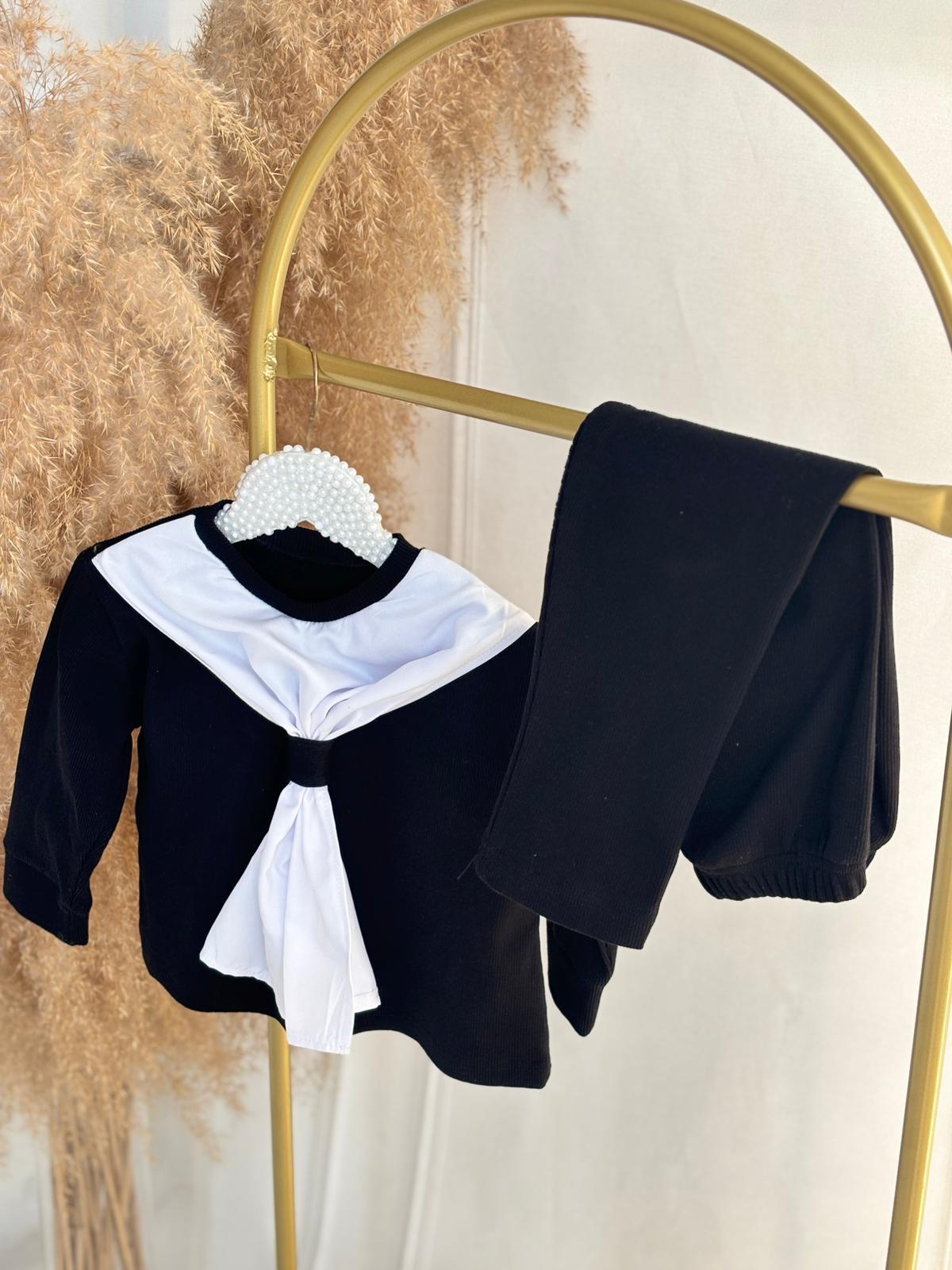 Bu şık ve rahat bebek siyah beyaz alt üst takım, minikleriniz için hem konforlu hem de stil sahibi bir seçim sunar. Ürün, yumuşak dokulu kumaşı sayesinde bebeğinizin hassas cildine uyum sağlar. Üst parçasında dikkat çeken beyaz detaylı fular tasarımı, sade görünümüne modern bir dokunuş katar. Alt parça ise lastikli paçaları ile kullanım kolaylığı sunar.