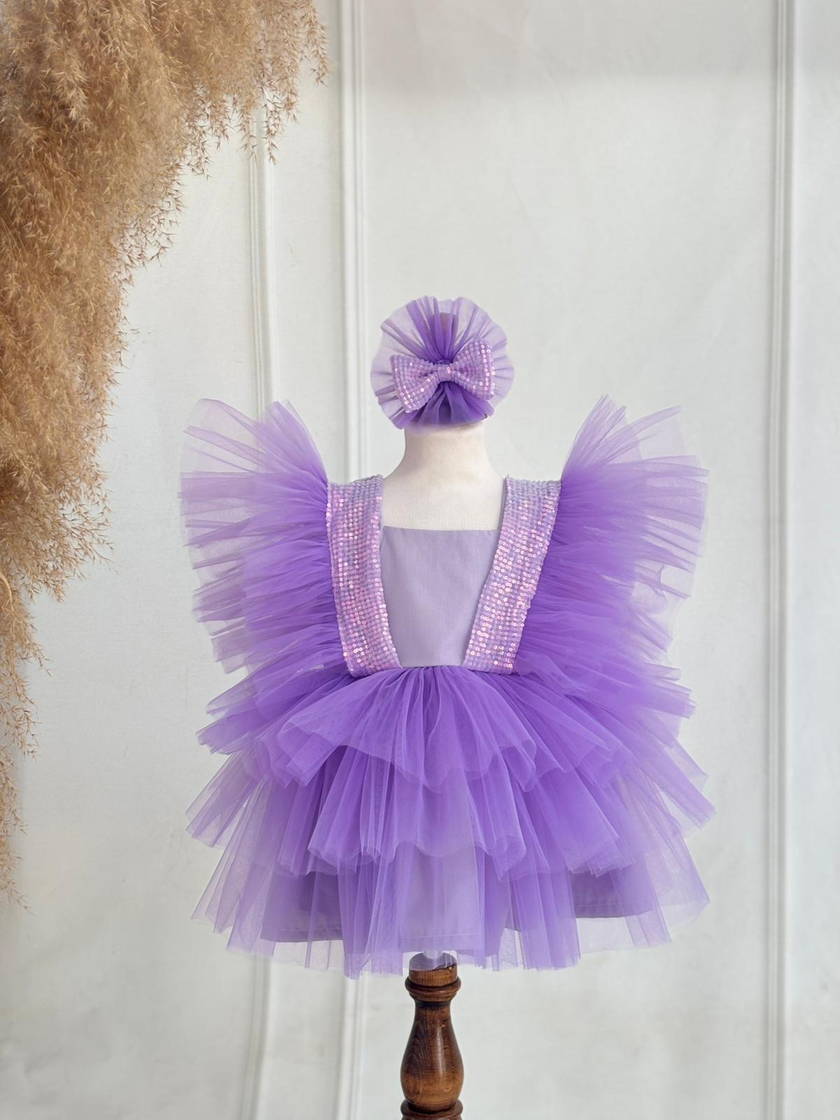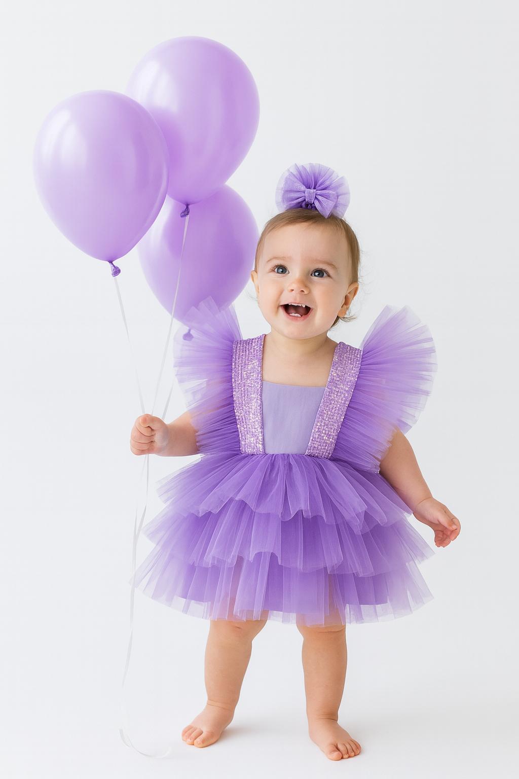 The Lilac Faced Tulle Birthday Dress is a stunning choice for your little princess's special days, combining timeless elegance with perfect comfort. Designed with the finest materials, this dress is perfect for sophisticated events and offers a perfect blend of style and softness.