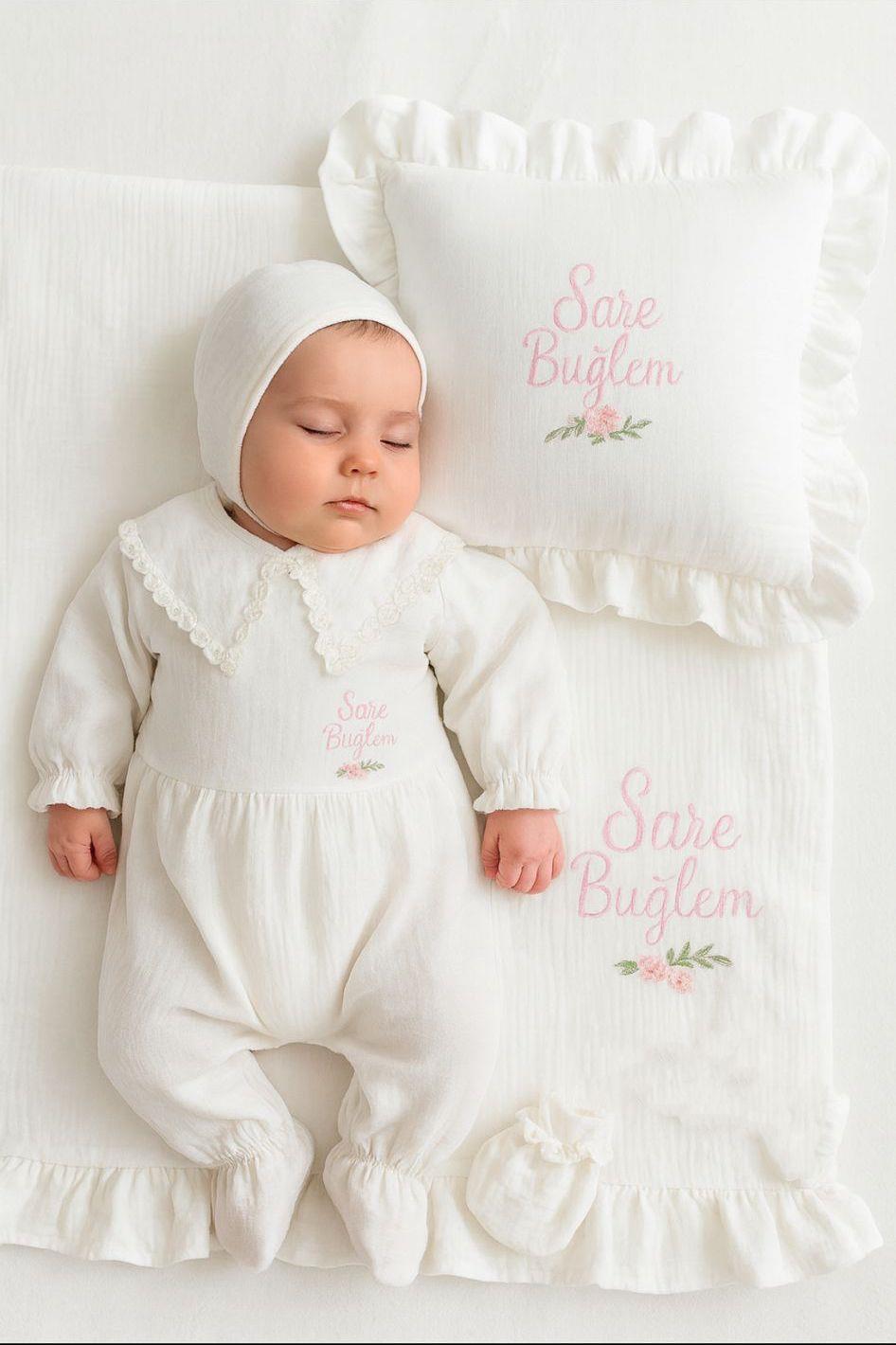 Made to order after purchase. It is made from cotton jersey fabric. The blanket size is 90-100 cm. The pillow size is 35-40 cm. The jumpsuit, blanket, pillow, stroller cover and accessories are sent as a set. You can select the size range that best fits your measurements from the size chart in the images and place your order. The name embroidery will be done on the chest. Products with name embroidery are personalized and cannot be returned. ATTENTION! If the name form is not filled out, the product will be shipped without the name embroidery!