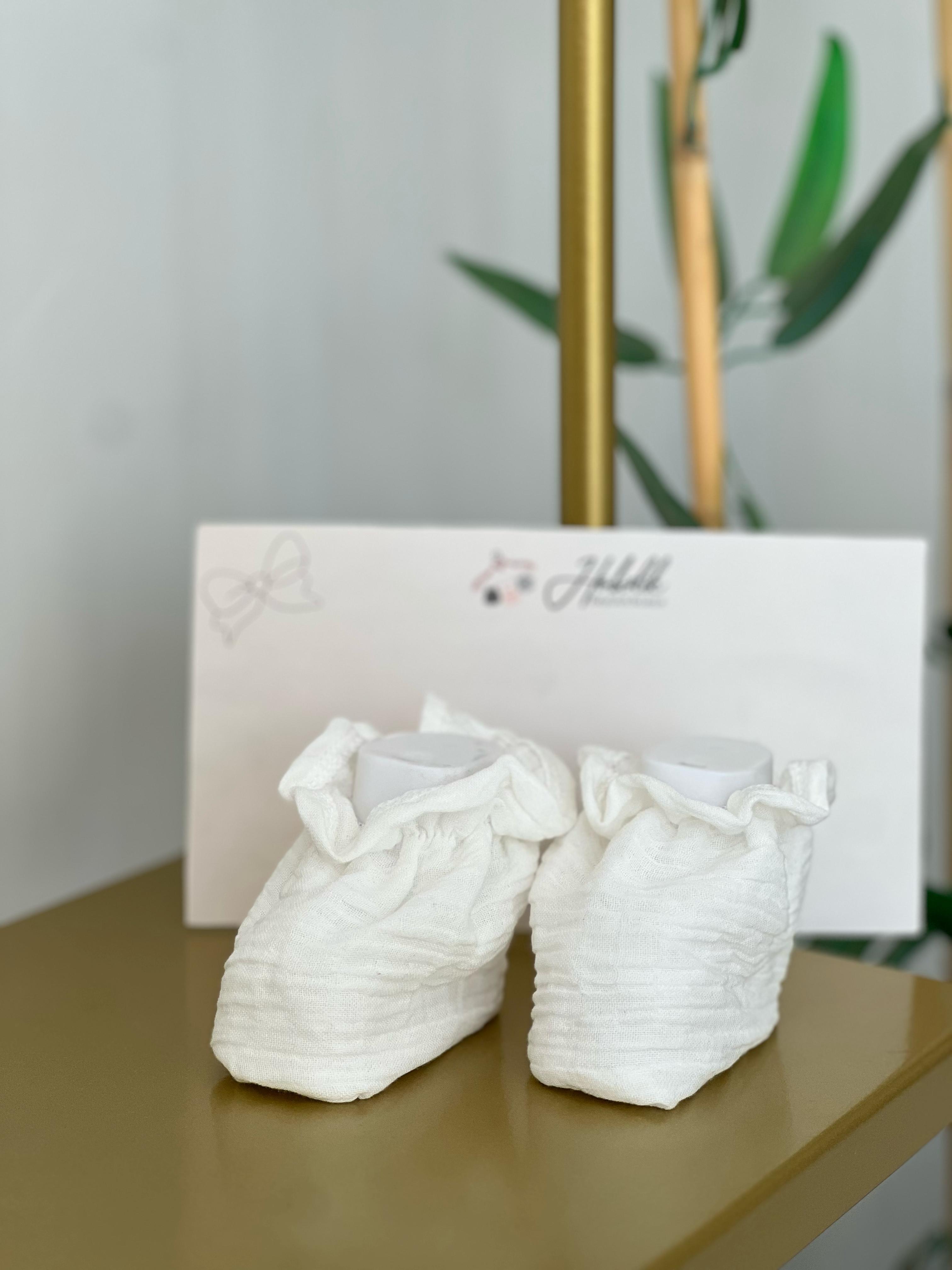 It is specially made after the order is placed. It is made of organic muslin fabric. With its soft fabric and comfortable fit, it allows your baby to move freely.