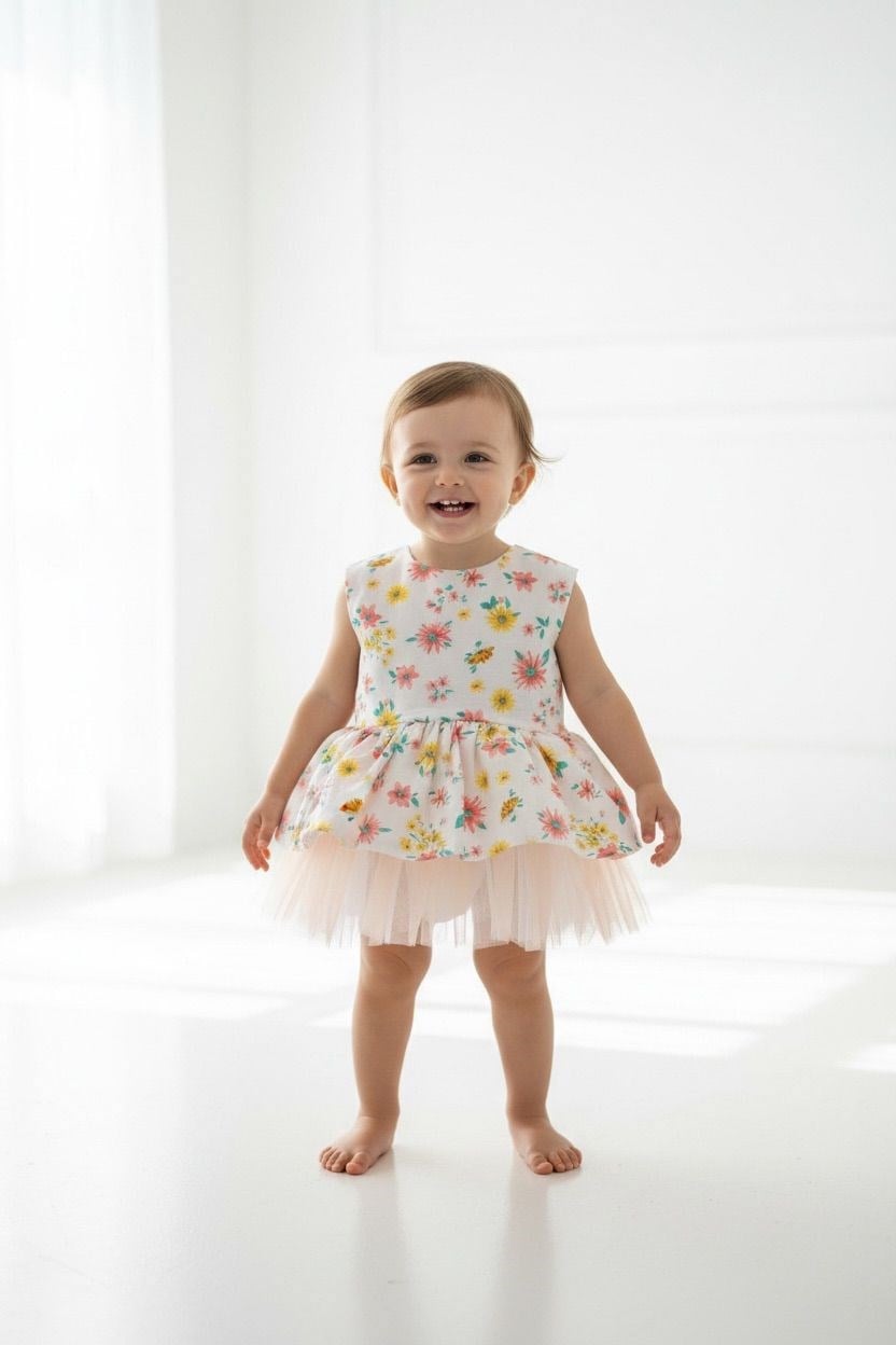 6-9 Ay Çiçekli Keten Elbise