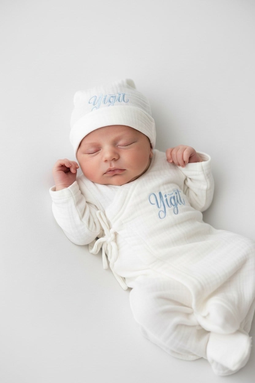 Erkek Bebek Çift Kat Müslin Tulum Set Hastane çıkışı