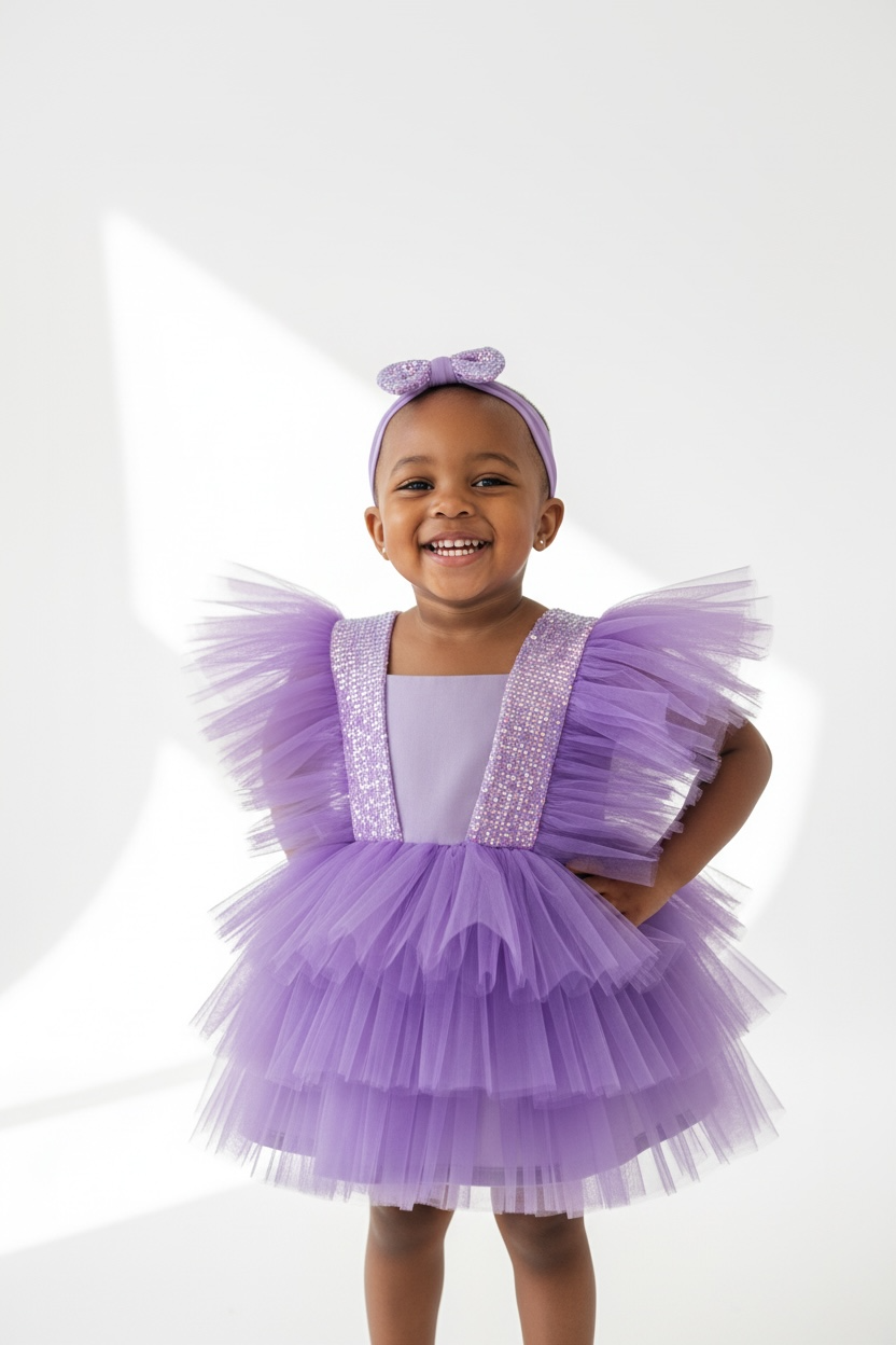 The Lilac Faced Tulle Birthday Dress is a stunning choice for your little princess's special days, combining timeless elegance with perfect comfort. Designed with the finest materials, this dress is perfect for sophisticated events and offers a perfect blend of style and softness.