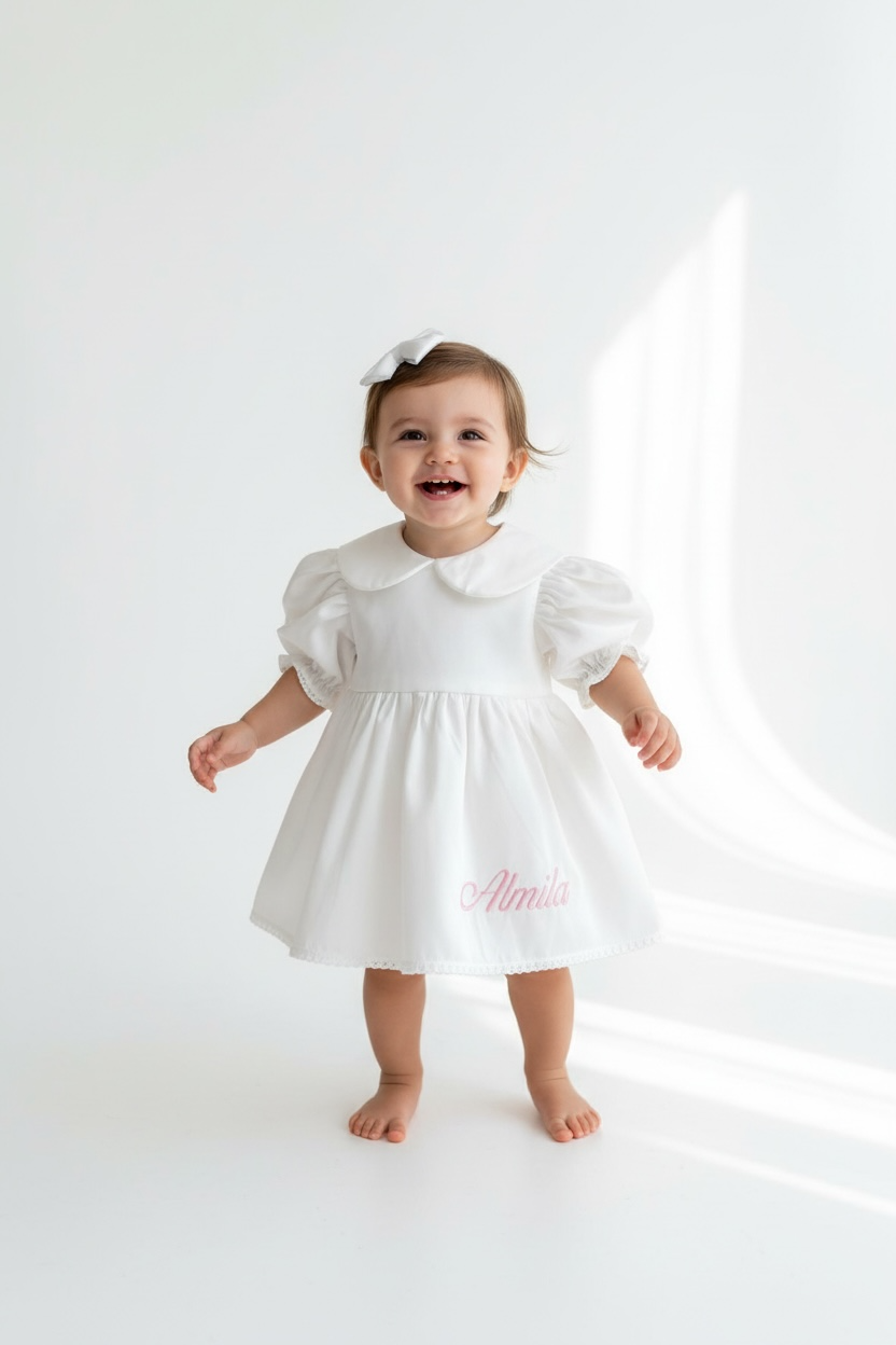 The White Baby Collar Dress is a stunning choice for your little princess's special days, combining timeless elegance with perfect comfort. Designed with the finest materials, this dress is perfect for sophisticated events and offers a perfect blend of style and softness.